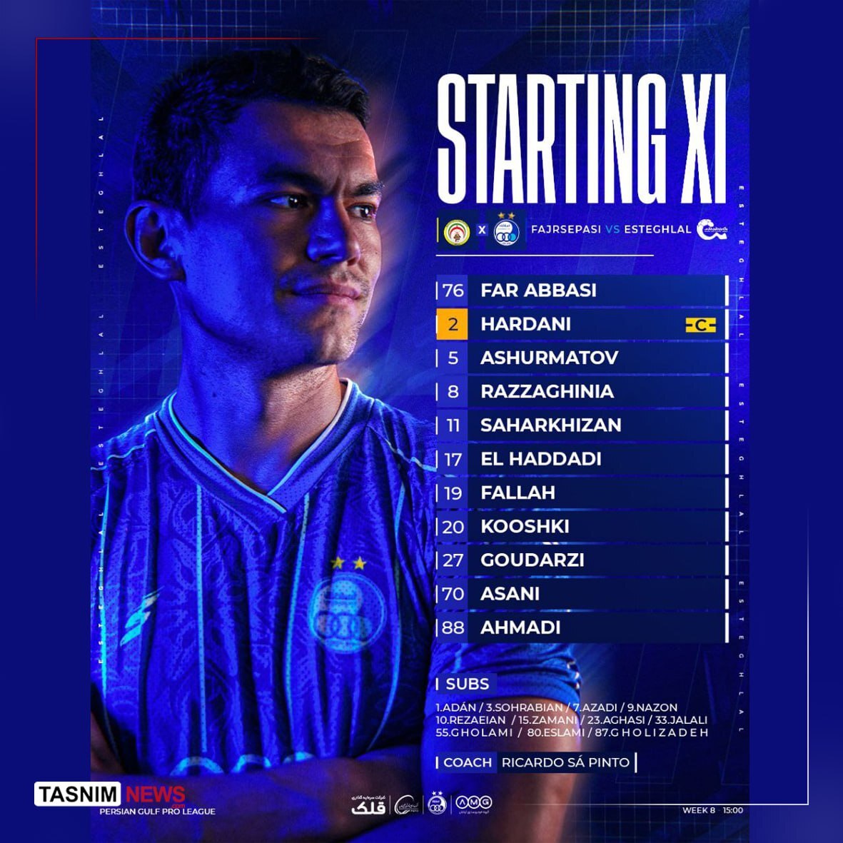 ترکیب استقلال در این بازی شامل حبیب فرعباسی، صالح حردانی، رستم آشورماتوف، سامان فلاح، حسین گودرزی، امیرمحمد رزاقینیا، مهران احمدی، منیر الحدادی، یاسر آسانی، علیرضا کوشکی و سعید سحرخیزان است.