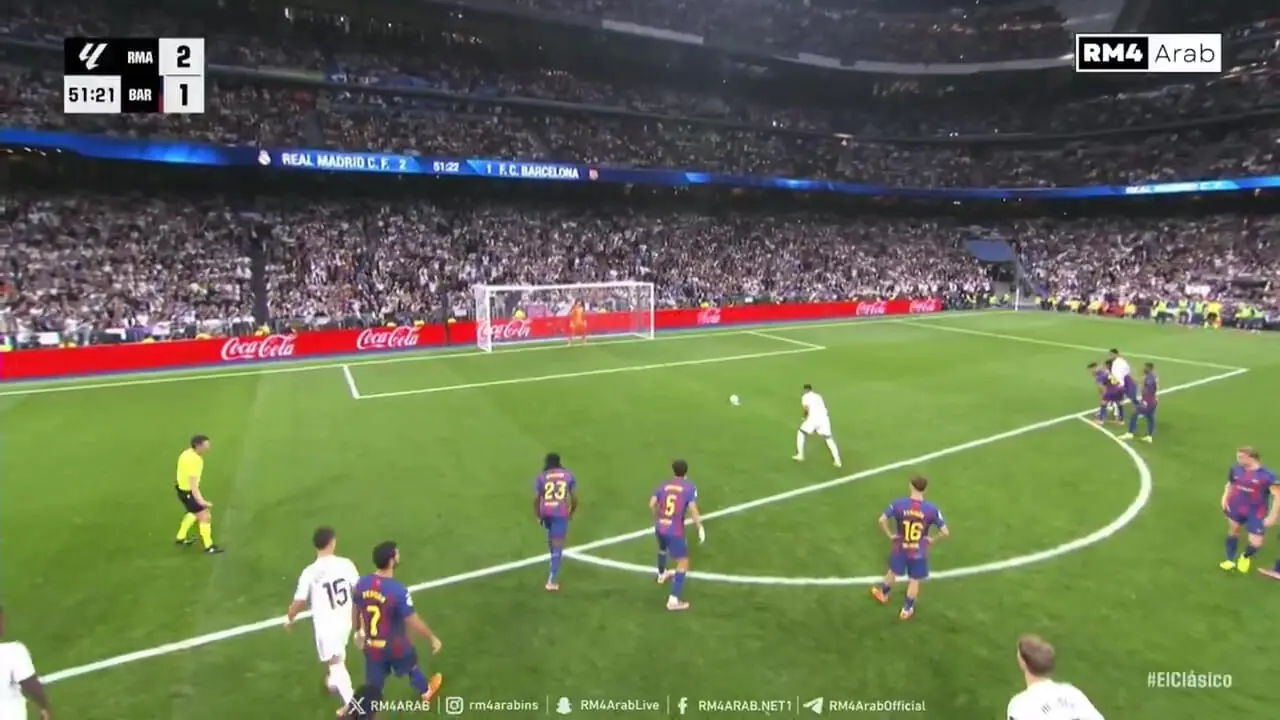 پنالتی رئال مادرید توسط امباپه زده شد و شزنی دروازه بان بارسلونا این پنالتی را مهار کرد.