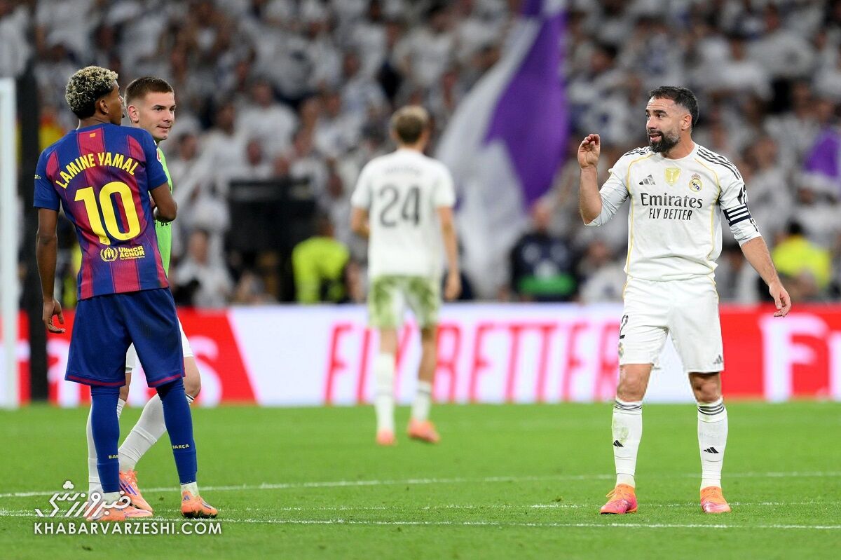 ثانیههای پایانی الکلاسیکو با درگیری بین بازیکنان رئال مادرید و بارسلونا و بهخصوص دنی کارواخال و لامین یامال، همراه شد.