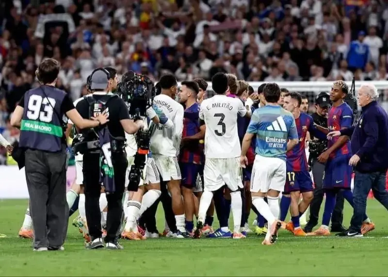 به گزارش ایلنا، درگیریهای پایان بازی بین رئال مادرید و بارسلونا با حضور پلیس برای مهار تنشها همراه شد. سوتو گرادو، داور مسابقه، در گزارش خود به صورت رسمی هفت بازیکن را ثبت کرد: چهار نفر از رئال و سه نفر از بارسا، شامل یک کارت قرمز و شش کارت زرد.