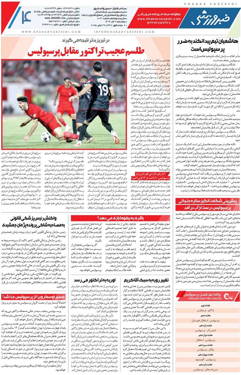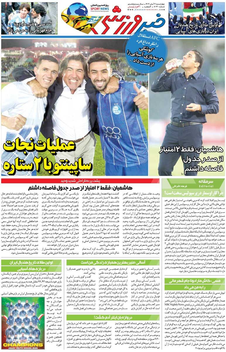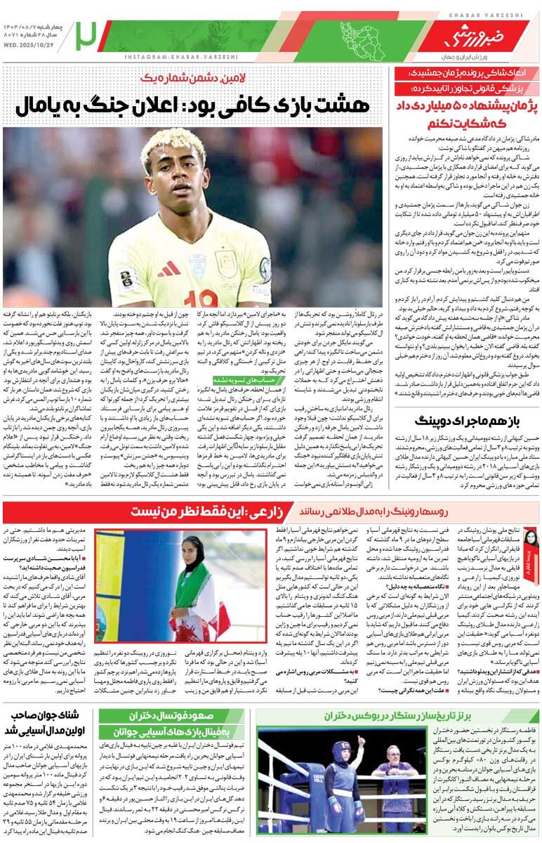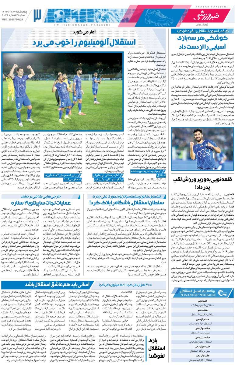 روزنامه خبرورزشی چهارشنبه ۷ آبان ۱۴۰۴ منتشر شد.