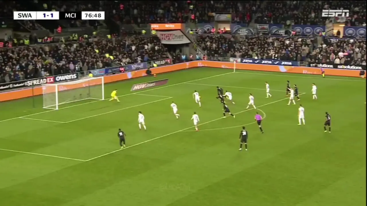 گل دوم منچسترسیتی به سوانسی توسط عمر مرموش زده شد.