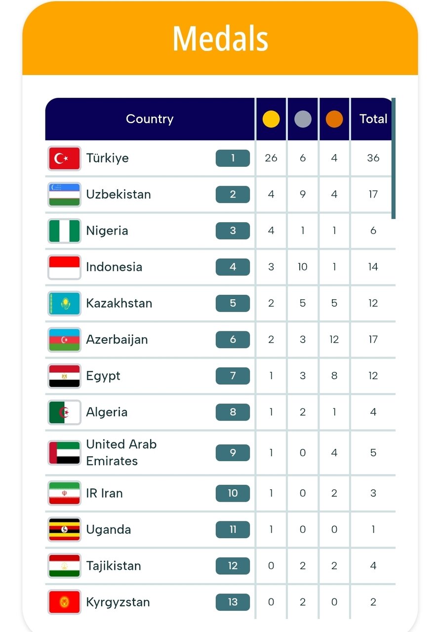 ایران روز دوم بازیهای همبستگی کشورهای اسلامی را با قرار گرفتن در رده دهم جدول مدالی به پایان رساند.