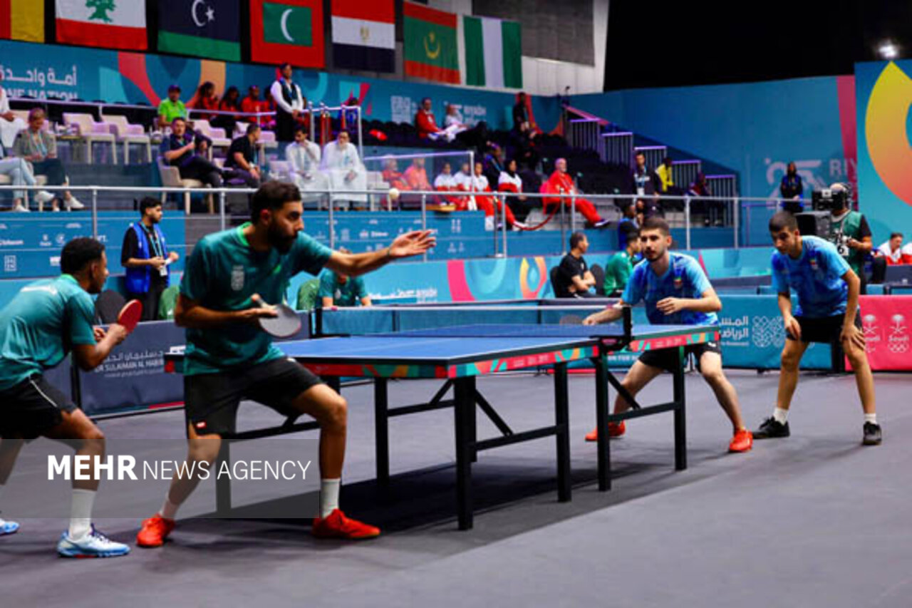 به گزارش خبرنگار مهر از عربستان، در آغاز این دیدار از مرحله نیمه نهایی رقابتهای تنیس روی میز، تیم دوبل ایران با ترکیب بنیامین فرجی و سیدمحمد موسوی طاهر با نتایج ۱۱ بر ۱، ۱۱ بر ۶ و ۹ بر ۱۱ برابر تیم الجزایر پیروز شد.