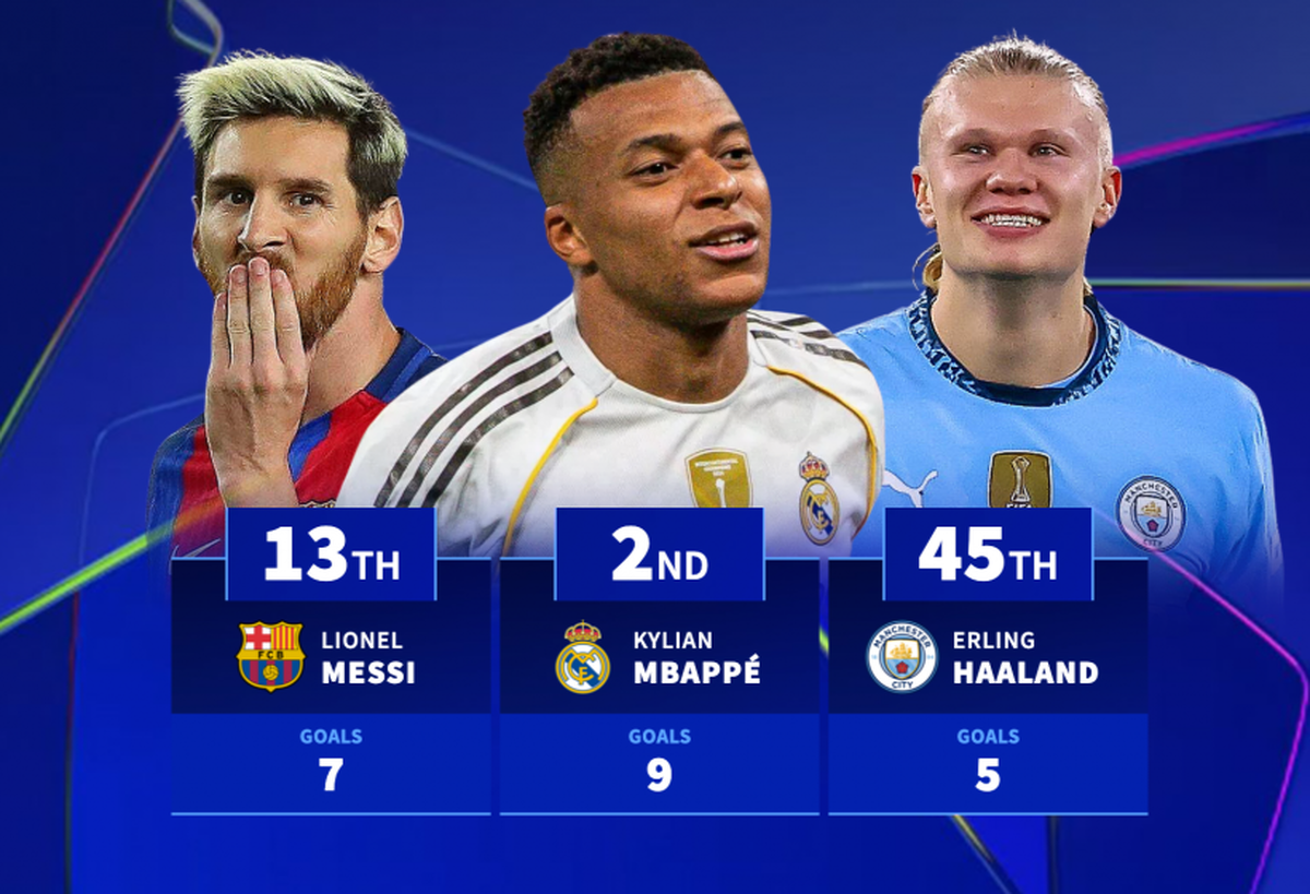 بر اساس دادههای ترنسفرمارکت، عملکرد امباپه در پنج بازی نخست فصل او را در جایگاه دوم تاریخ لیگ قهرمانان قرار میدهد؛ جایی که چهار بازیکن بزرگ دیگر نیز ۹ گل در پنج بازی اول خود ثبت کردهاند. لیونل مسی، روبرت لواندوفسکی، لوئیز آدرینیو و سباستین هالر نیز در این لیست دیده میشوند.