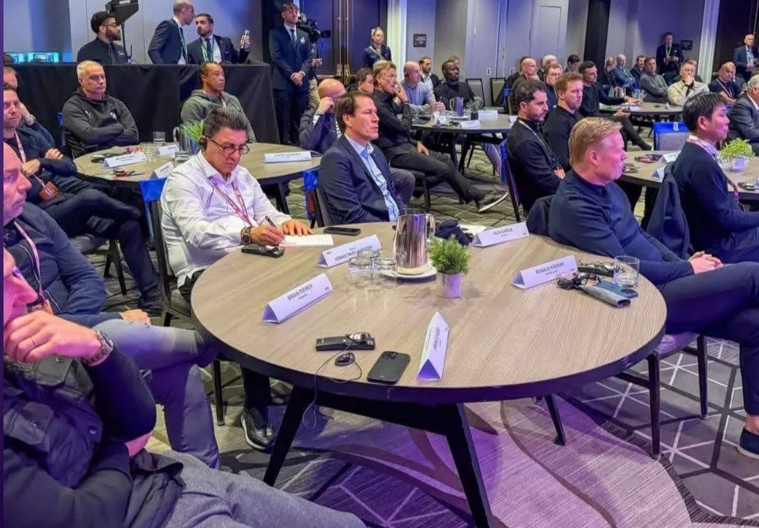 در یکی از این جلسات، اتفاق جالبی رخ داد. قلعهنویی پشت میز مشترکی با رونالد کومان، سرمربی هلند، و رودی گارسیا، سرمربی بلژیک، نشست؛ دو تیمی که کمتر از هفت ماه دیگر باید مقابل ایران قرار بگیرند. این چینش صندلیها از پیش توسط فیفا برنامهریزی میشود و مربیان در انتخاب محل نشستن نقشی ندارند.