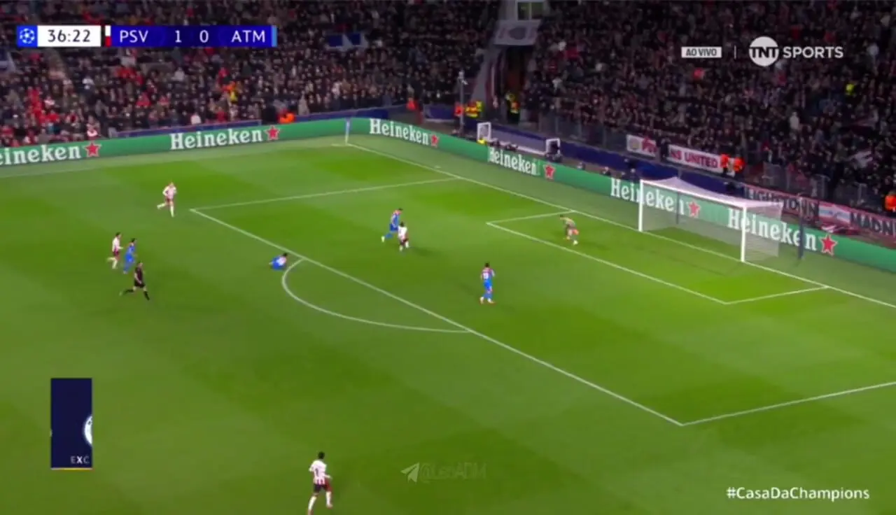 گل اول اتلتیکو مادرید به آیندهوون توسط آلوارز زده شد.