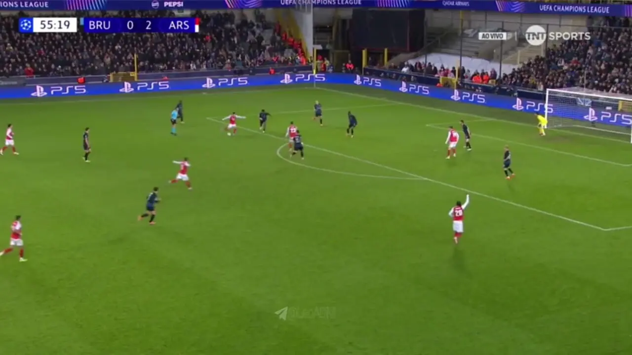 گل سوم آرسنال به کلوب بروژ توسط مارتینلی زده شد.