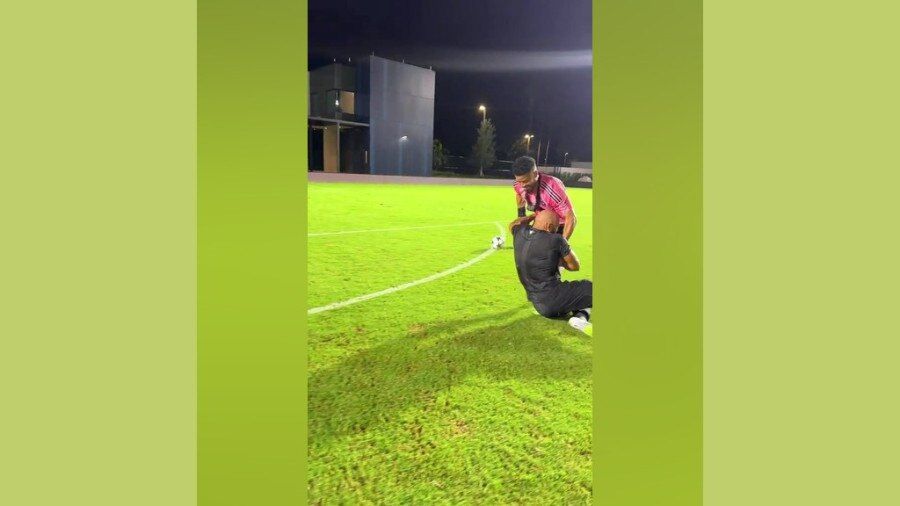 ویدیو| وقتی بادیگارد مسی بازیکنان را هم مهار میکند!