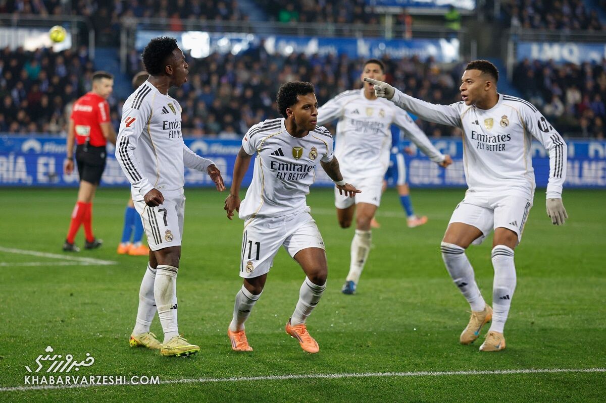 در این مسابقه ابتدا شاگردان رئال مادرید با گل دقیقه ۲۴ کیلیان امباپه از حریف پیش افتادند، اما آلاوس در دقیقه ۷۰ بازی را به تساوی کشاند تا شرایط برای کارلو آنچلوتی (یا آلونسو) دشوارتر شود. با این حال، رودریگو که در هفتههای اخیر بیشتر مورد اعتماد سرمربی قرار گرفته، در دقیقه ۷۶ گل برتری رئال را به ثمر رساند تا نقش منجی تیمش را ایفا کند.