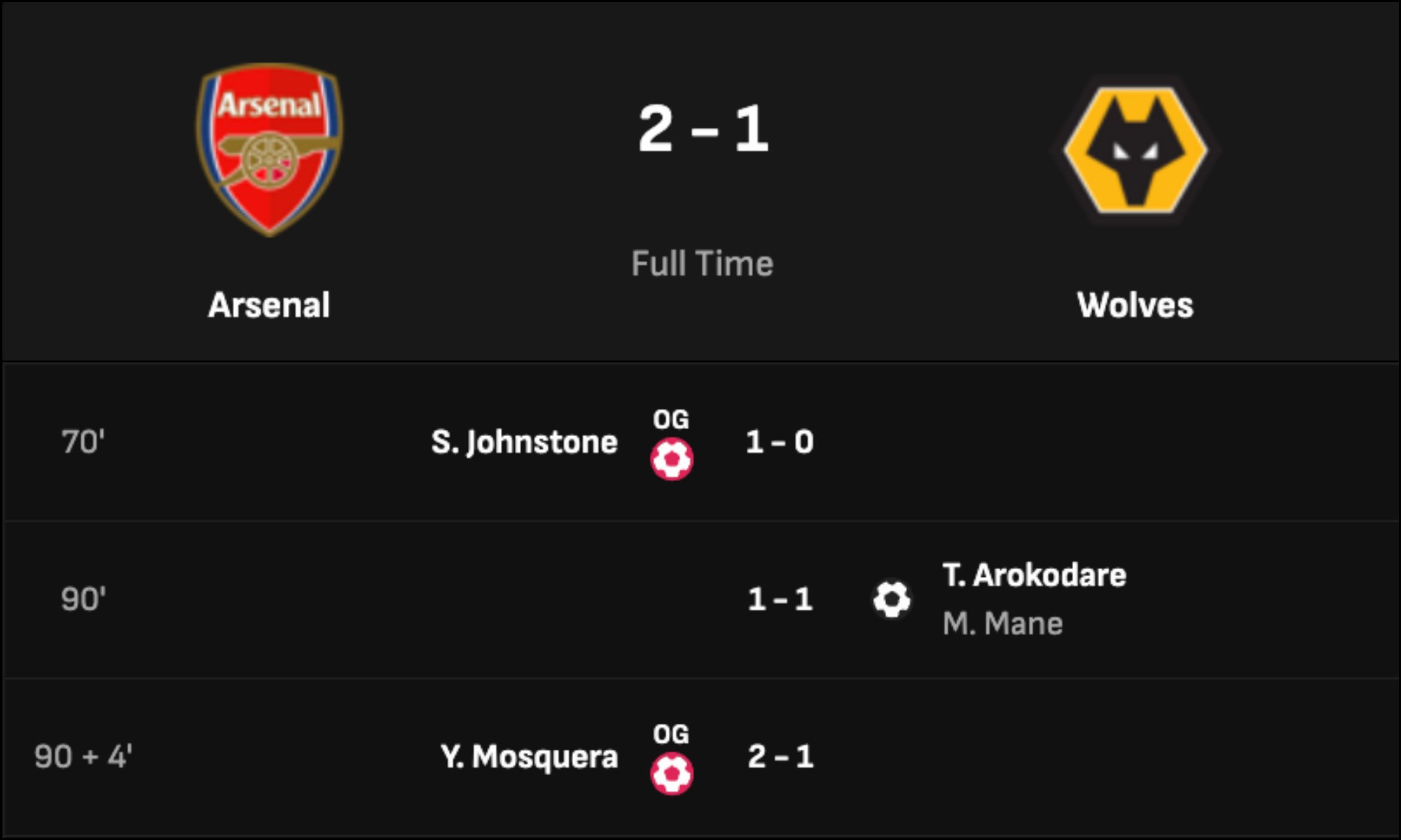 آرسنال در دقایق پایانی گل زد