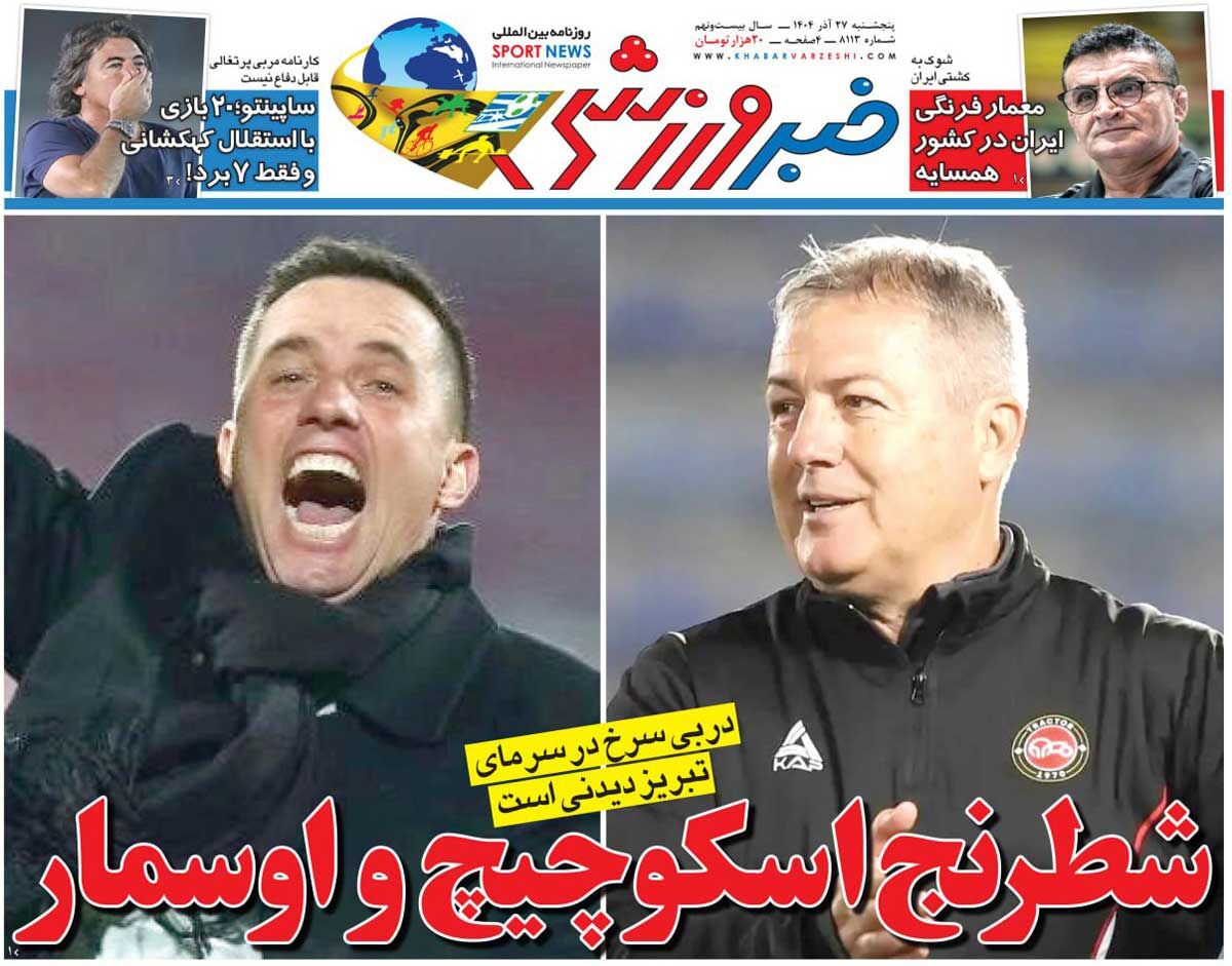 روزنامه خبرورزشی پنجشنبه ۲۷ آذر ۱۴۰۴ منتشر شد.