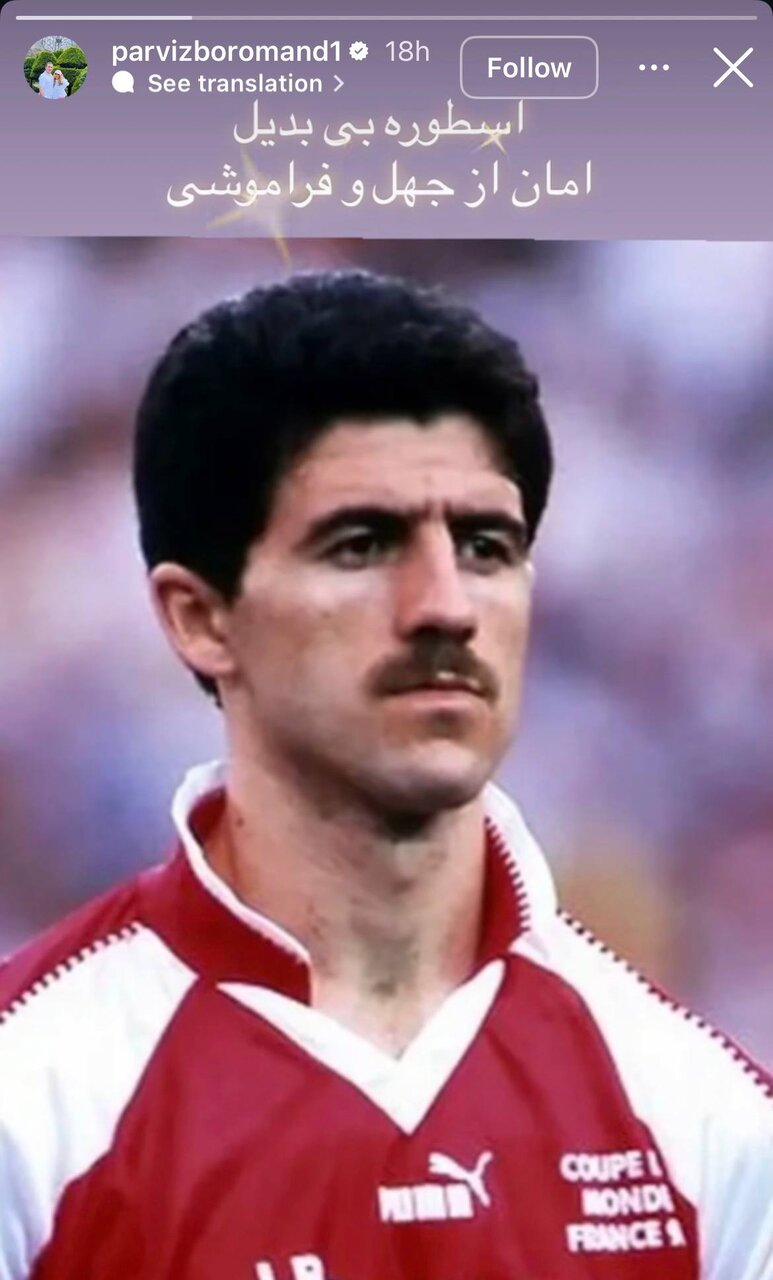 پرویز برومند، دروازه‌بان اسبق استقلال که در تیم ملی همبازی باقری بود هم با انتشار یک استوری از او حمایت کرد و نوشت: «اسطوره بی‌بدیل، امان از جهل و فراموشی.»