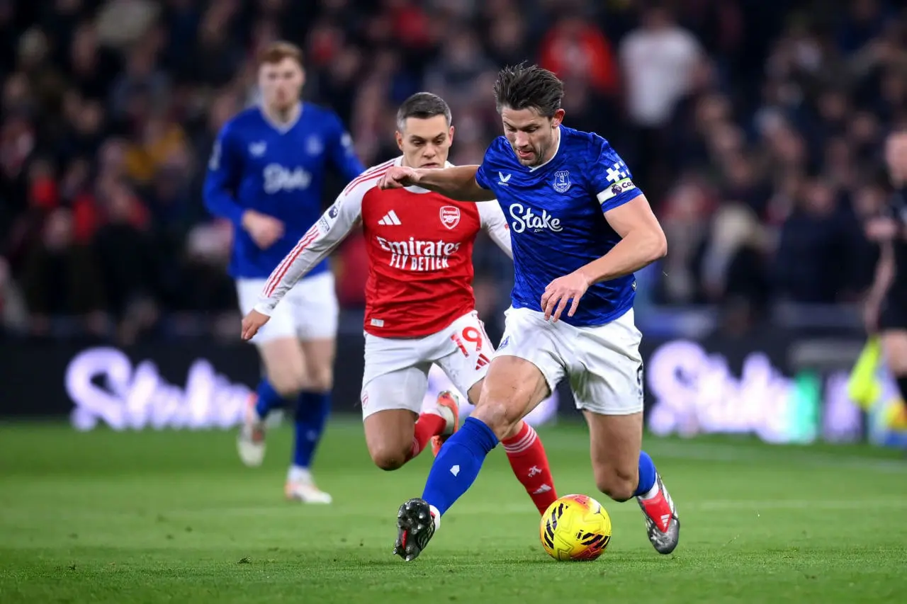 شروع مسابقه برای آرسنال ساده نبود. اورتون با توپهای بلند، پرتابهای اوبراین و فشارهای مقطعی، سعی کرد ریتم را بشکند و آرسنال را تحت فشار بگذارد. توپ بیشتر در اختیار آرسنال بود، اما نفوذ به محوطه میزبان سخت پیش میرفت. تا میانه نیمه اول، بازی کمموقعیت بود و بیشتر به نبردی ذهنی شباهت داشت تا نمایش تکنیکی.