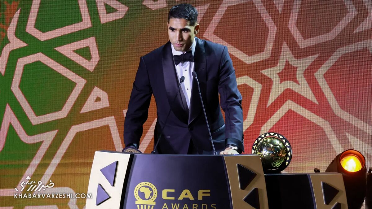 اشرف حکیمی توپ طلای آفریقا را پیش از بازی مراکش – کومور به نمایش گذاشت.