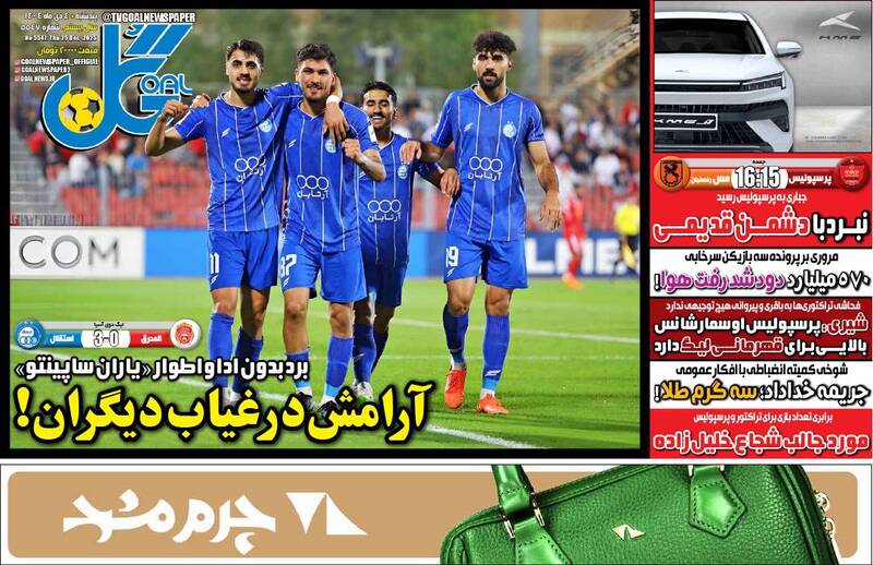 عکس/ تیتر روزنامههای ورزشی پنجشنبه ۴ دی ۱۴۰۴