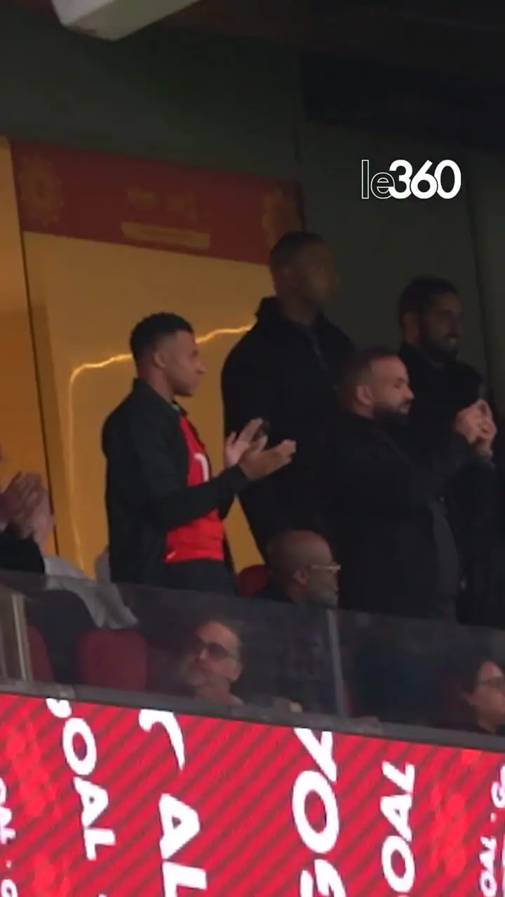 کیلیان امباپه که برای تشویق مراکش، با پیراهن این کشور در جایگاه تماشاگران نشسته، پس از گلزنی براهیم دیاز، بازیکن همتیمیاش در رئال مادرید، خوشحالی می کند. مراکش با تک گل دیاز در برابر مالی به تساوی رسید.