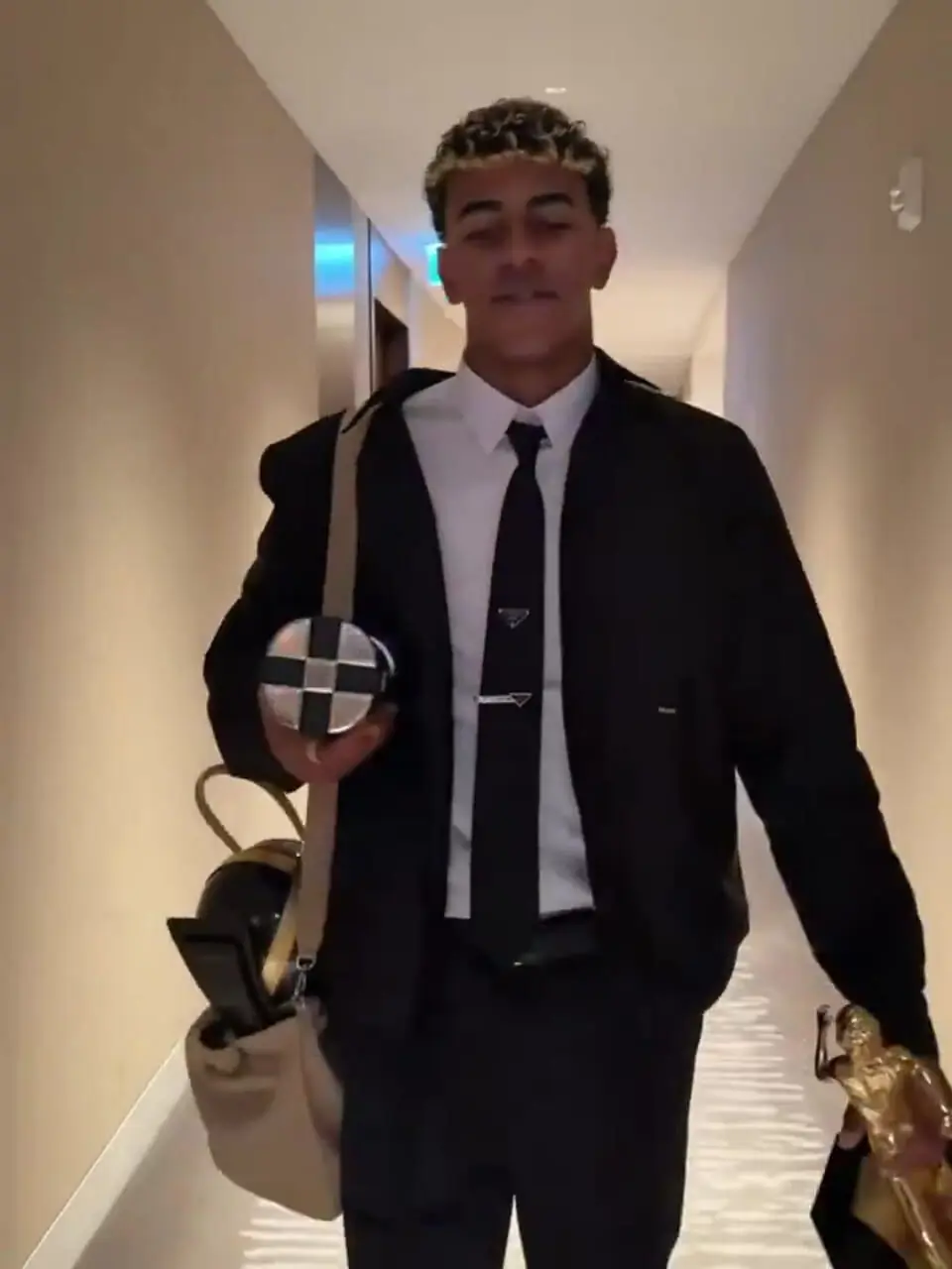 در این ویدئو، یامال در حالی که چندین جایزه از جمله جایزه مارادونا را در دست دارد، راهی اتاق هتل میشود؛ صحنهای که موفقیت او در مراسم گلوب ساکر را به تصویر میکشد.