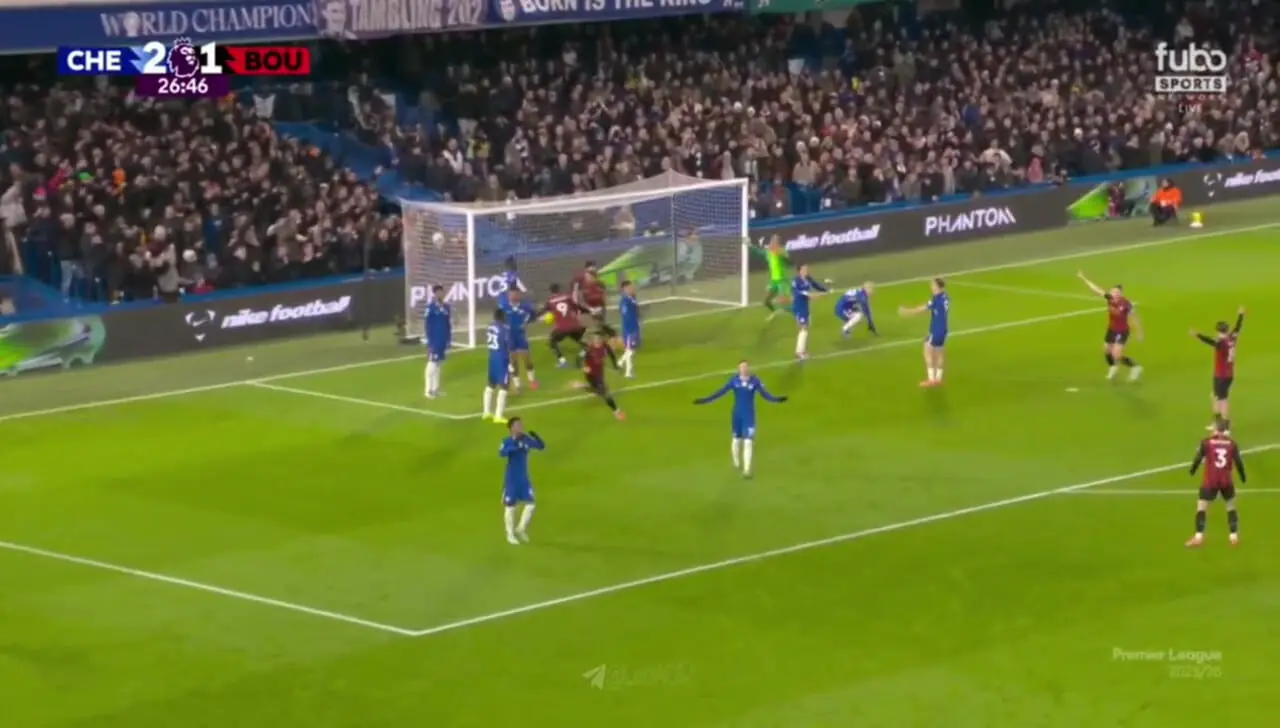 گل دوم بورنموث به چلسی توسط جاستین کلایورت زده شد.