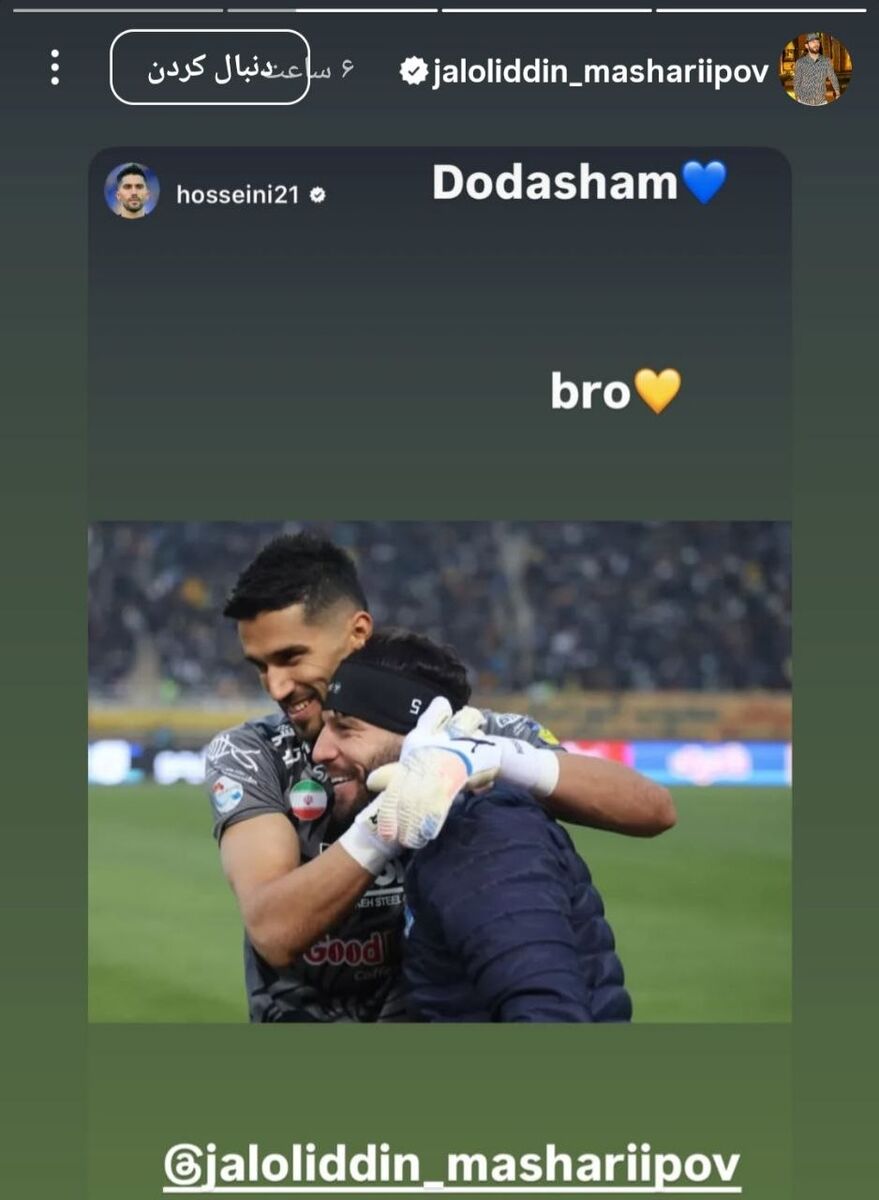 به گزارش خبرگزاری خبرآنلاین؛ حسین حسینی پس از بازی با استقلال با انتشار متنی تند به ریکاردو ساپینتو حمله کرد؛ متنی که بازتاب زیادی داشت و حتی شائبه سردی رابطه او با برخی بازیکنان را ایجاد کرد. با این حال، حسینی همچنان با تعدادی از آبیپوشان از جمله جلالالدین ماشاریپوف رابطه نزدیکی دارد. سنگربان سپاهان از ستاره ازبک استقلال به عنوان «داداشم» یاد کرد و ماشاریپوف نیز متقابلاً او را «برادر» خطاب کرد؛ موضوعی که بعید است واکنشی منفی از سوی ساپینتو بهدنبال داشته باشد.
