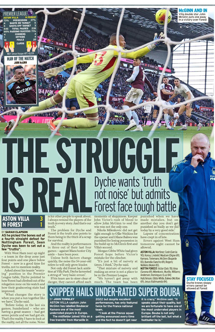 در نیمکت کناری، شان دایچ نشسته است. اگر او نتواند جلوی نزول و سقوط نگرانکننده ناتینگهام فارست را بگیرد، شاید خوششانس باشد اگر ۱۰ بازی دیگر هم روی نیمکت بماند. زندگی برای یک سرمربی تیم لیگ برتر خیلی سریع عوض میشود. چهار بازی پیش، دایچ بابت پیروزی ۳-۰ تیمش برابر تاتنهام و در ماه نوامبر با همان نتیجه در آنفیلد مقابل لیورپول، تحسین زیادی شد. اما فارست از آن زمان حتی یک امتیاز هم نگرفته و در مقابل ویلا اثری از اینکه بتوانند جلوی واکنش سریع استون ویلا پس از شکست سنگین ۴-۱ مقابل آرسنال در میانه هفته را بگیرند، دیده نمیشد.