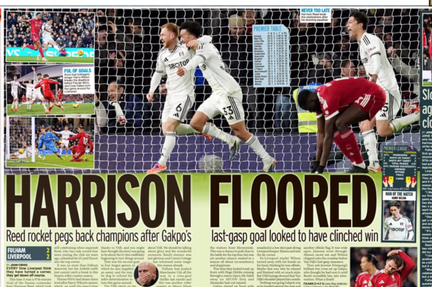 فلوریان ویرتس ابتدا با گل خود، کار را برای لیورپول پس از گل هری ویلسون به تساوی کشاند، پیش از آنکه خاکپو در وقتهای تلفشده روی ارسال یرمی فریمپونگ دروازه فولام را باز کند؛ بهظاهر سه امتیاز برای لیورپول قطعی بود.
