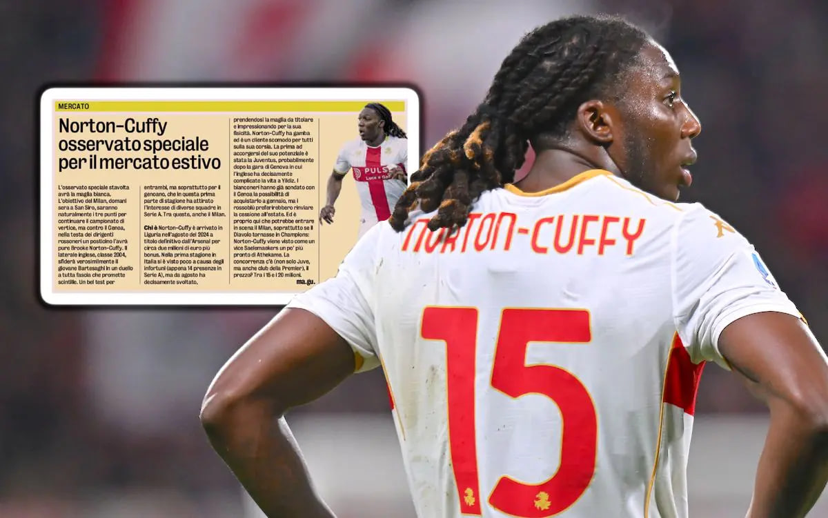 به گزارش گاتزتا دلو اسپورت، مدیران میلان در دیدار فرداشب تیمشان برابر جنوا در سنسیرو، بروک نورتونکافی را زیر نظر خواهند داشت. این بازیکن متولد ۲۰۰۴ که تابستان ۲۰۲۴ با مبلغی حدود ۲ میلیون یورو از آرسنال به جنوا پیوست، فصل گذشته بهدلیل مصدومیت کمتر دیده شد، اما از ابتدای فصل جاری عملکردی قابل توجه داشته و توجه چند باشگاه را جلب کرده است.