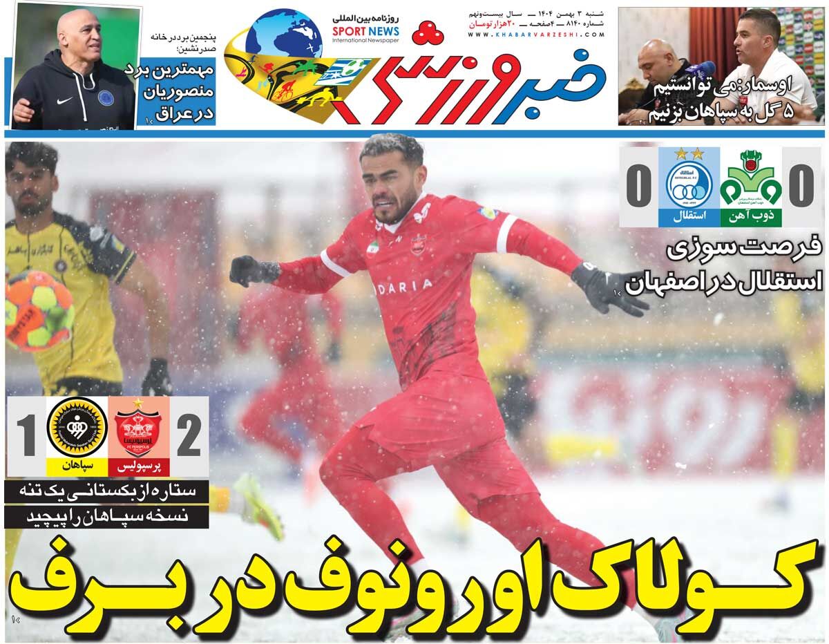 روزنامه خبرورزشی شنبه ۴ بهمن ۱۴۰۴ منتشر شد.
