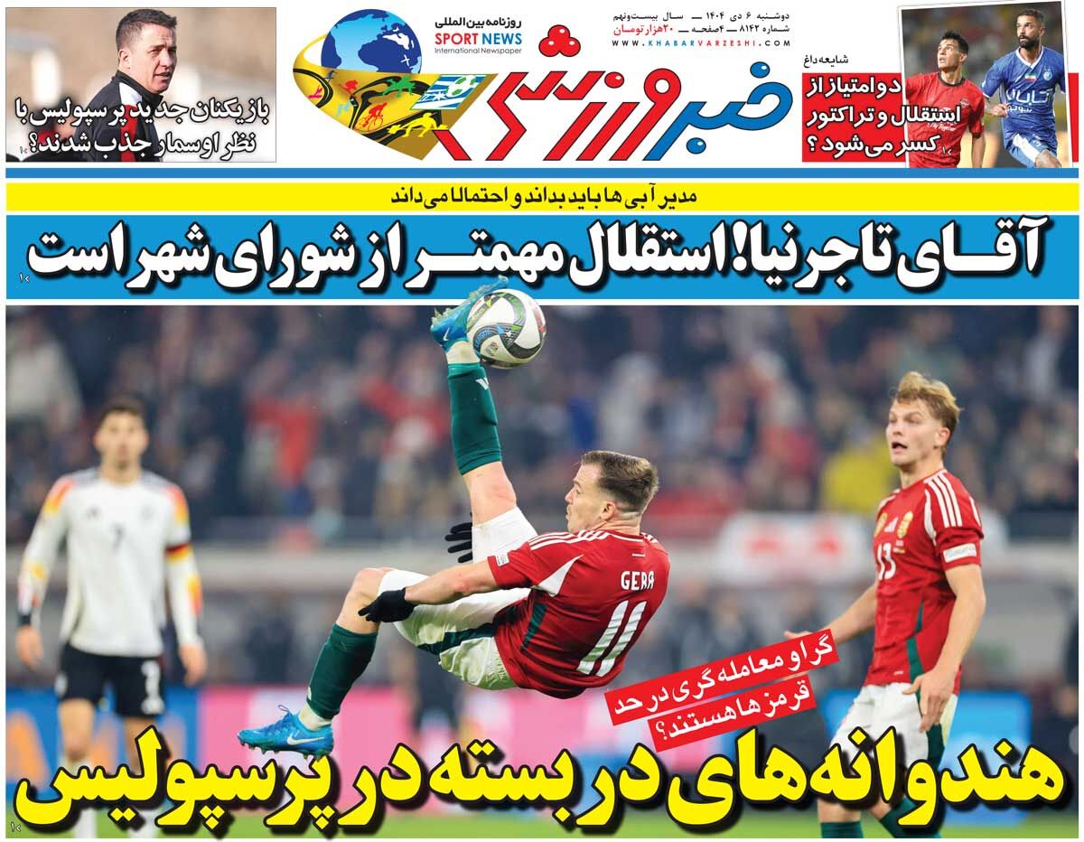 روزنامه خبرورزشی دوشنبه ۶ بهمن ۱۴۰۴ منتشر شد.