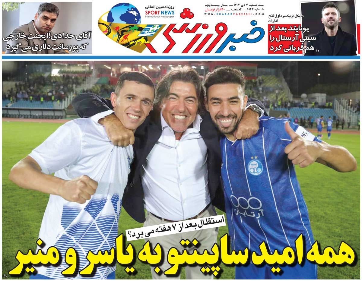 روزنامه خبرورزشی سهشنبه ۷ بهمن ۱۴۰۴ منتشر شد.