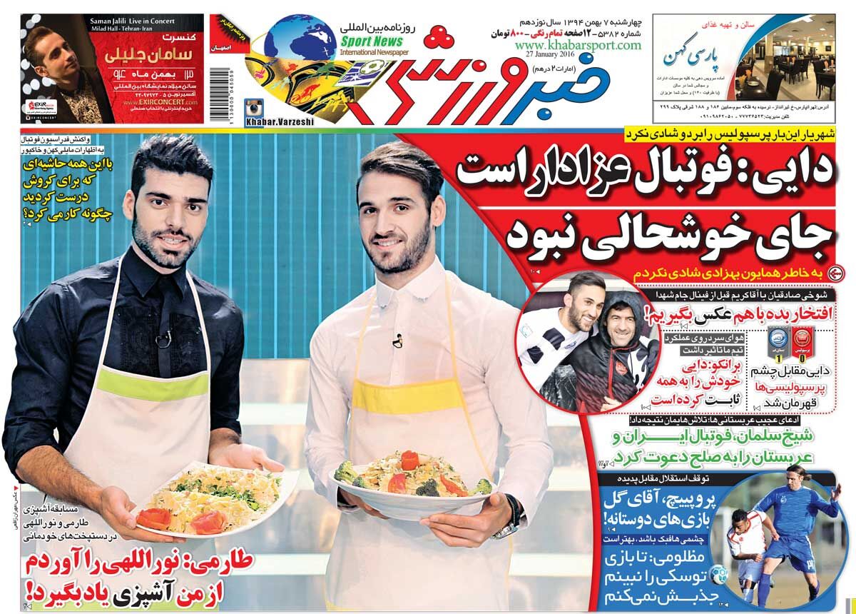 عکس جلد روزنامه خبرورزشی در تاریخ ۷ بهمن ۱۳۹۴ را ملاحظه می‌کنید.