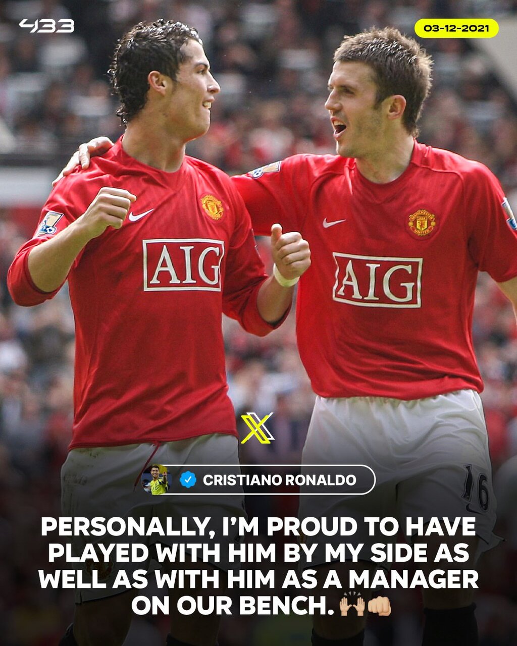 شروع رویایی کریک در منچستریونایتد همه را بهیاد پیام قدیمی کریستیانو رونالدو انداخته است. رونالدو ۴ سال قبل و در واکنش به اتمام دوران موقت کریک روی نیمکت منچستریونایتد نوشته بود: «کریک بازیکنی فوقالعاده بود و میتواند به یک مربی بزرگ هم تبدیل شود. برای او هیچچیز غیرممکن نیست. شخصاً به این افتخار میکنم که کنار او بازی کردهام و او مربی من بوده است.»