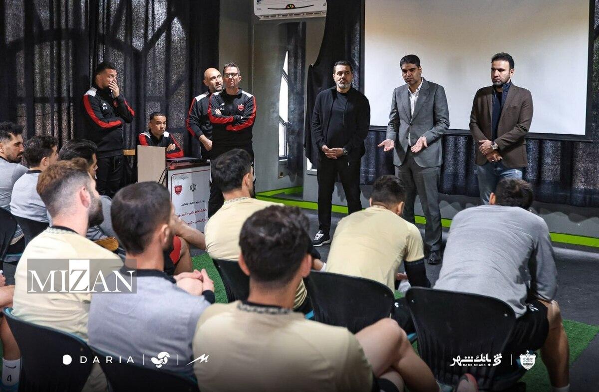 نشست حدادی با مدیر، سرمربی و اعضای تیم فوتبال پرسپولیس بعد از ۲ شکست بد