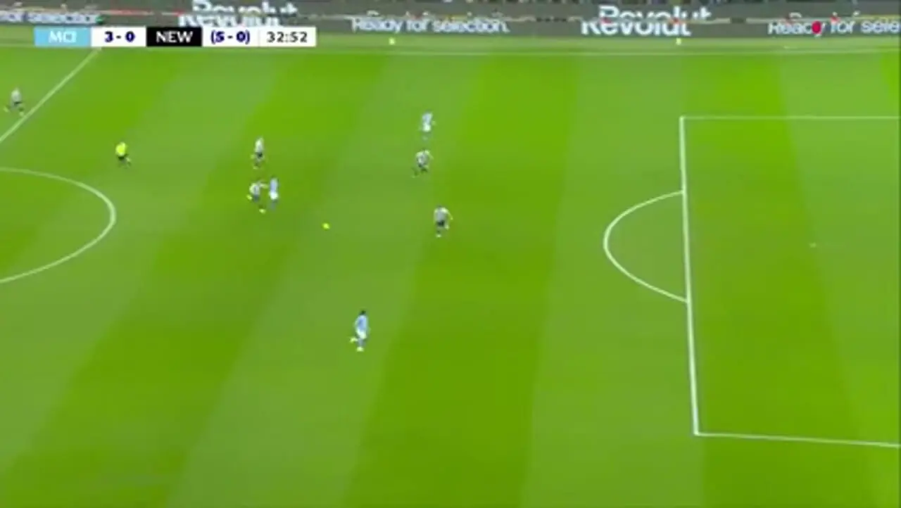 گل سوم منچسترسیتی به نیوکاسل توسط ریندرز دز دقیقه ۳۲ زده شد.