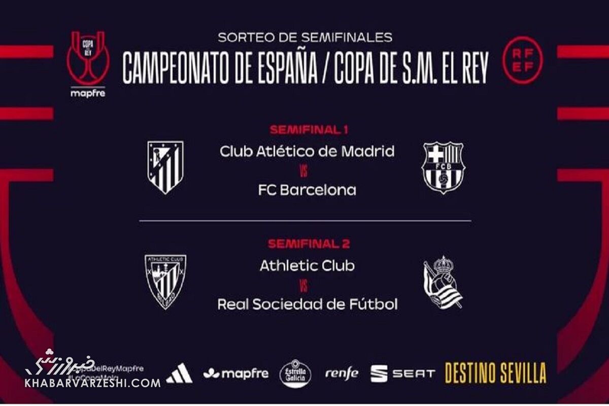 در نیمهنهایی دیگر، اتلتیک بیلبائو و رئال سوسیهداد در یک دربی جذاب به مصاف هم میروند.