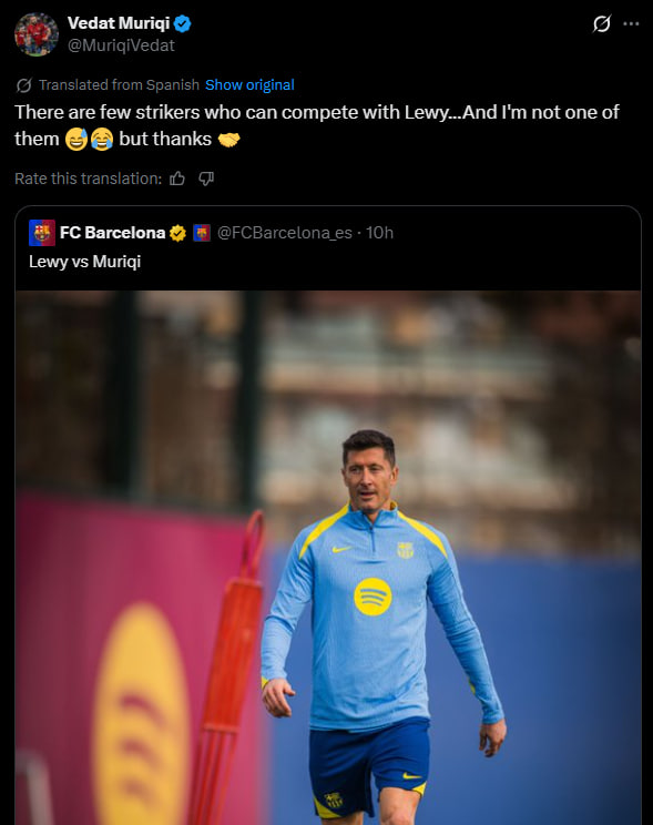 در آستانه بازی بارسلونا و مایورکا، حساب توییتری باشگاه بارسلونا یک عکس از روبرت لواندوفسکی منتشر کرد و نام او را کنار ودات موریچ، مهاجم گلزن این تیم آورد. موریچ که در حال حاضر پایینتر از کیلیان امباپه و با ۱۵ گل دومین گلزن برتر لالیگا محسوب میشود، در واکنش به این مقایسه نوشت:
