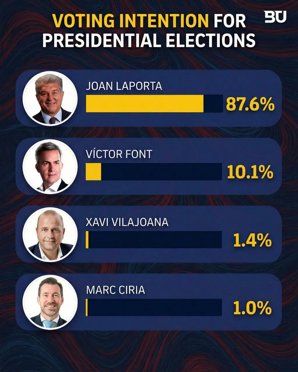 ویکتور فونت نسبت به امثال ژاوی ویلاخوانا و مارک سیریا شانس بسیار بهتری دارد اما باز هم اختلاف زیادی بین او و لاپورتا وجود دارد.