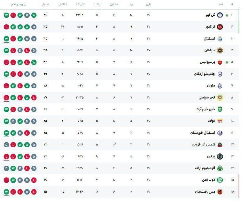 عکس| جدول لیگ برتر فوتبال ایران در پایان روز دوم هفته بیستویکم