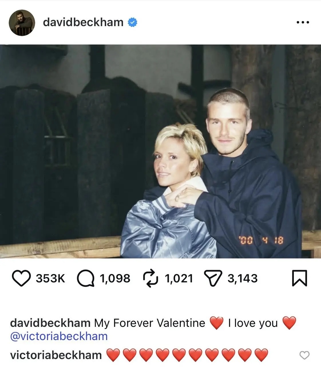 دیوید بکام به مناسبت روز ولنتاین پستی در صفحه اینستاگرام خود منتشر کرد.