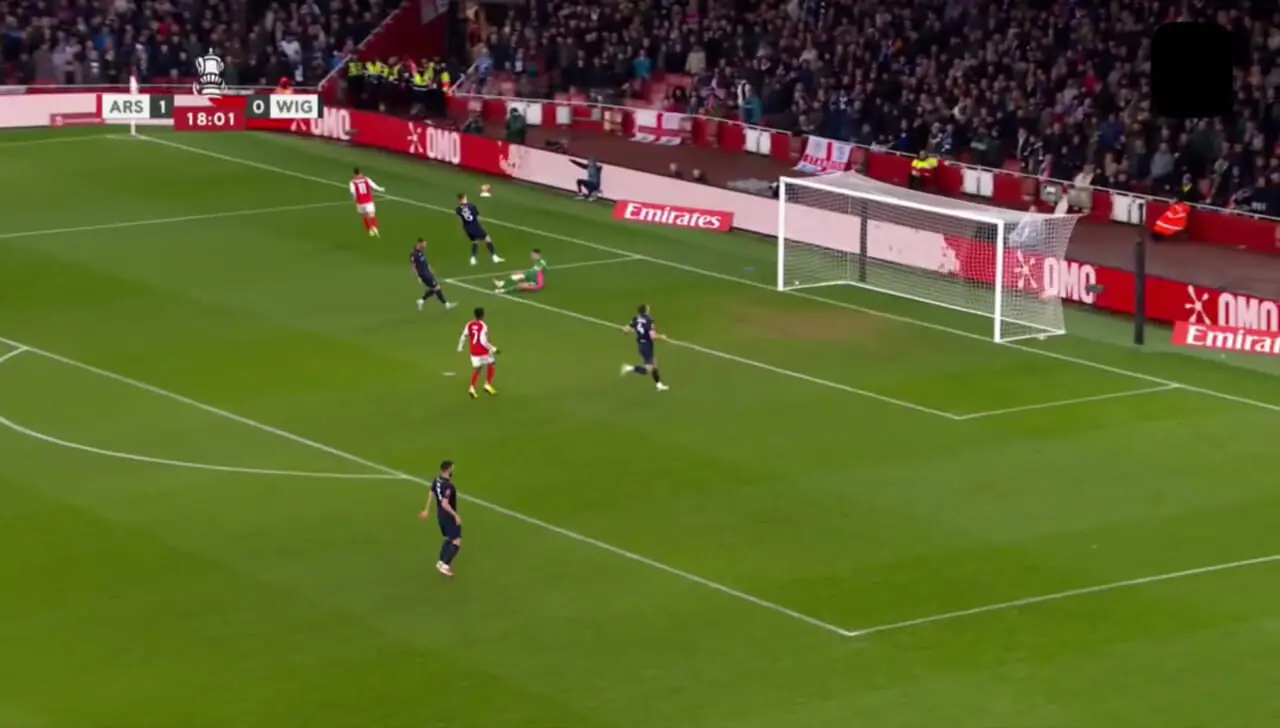 گل دوم آرسنال به ویگان توسط مارتینلی زده شد.