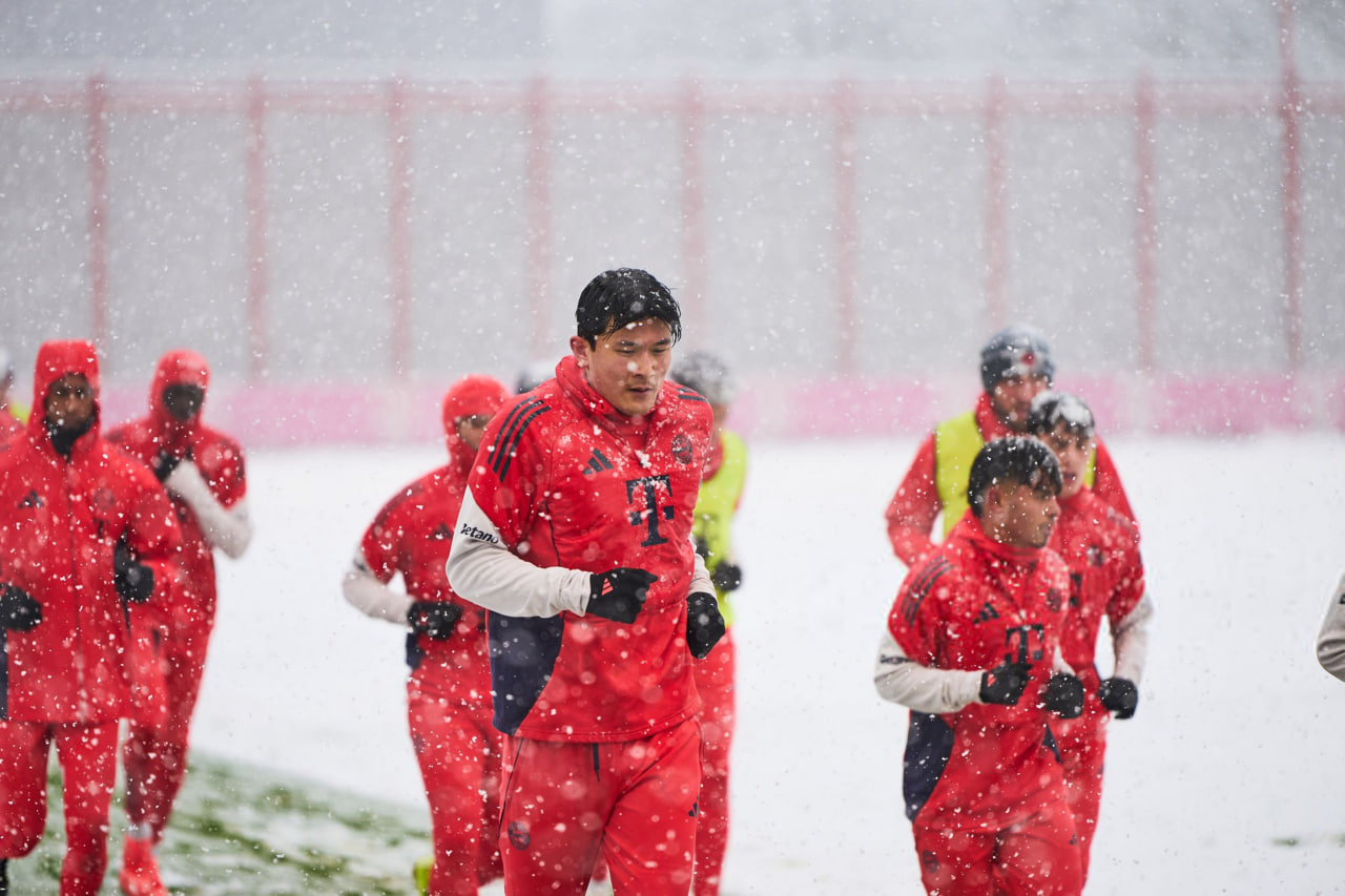 بایرن مونیخ تمرین امروز خود را در میان بارش سنگین برف پیگیری کرد. مطابق گزارش خبرنگاران، به جز مانوئل نویر که اخیراً مصدوم شده، همه بازیکنان ونسان کمپانی روی برف تمرین کردند. سرمربی بلژیکی در لحظاتی به بازیکنان گفت «با توجه به شرایط زمین، نمیخواهم هیچ ریسکی کنید.»