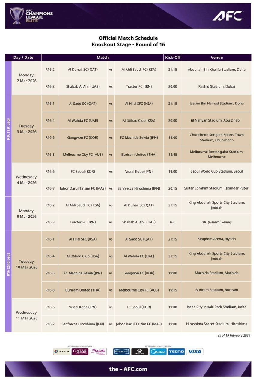 با اعلام کنفدراسیون فوتبال آسیا، دیدار تراکتور و شباب الاهلی در زمین بیطرف برگزار میشود.