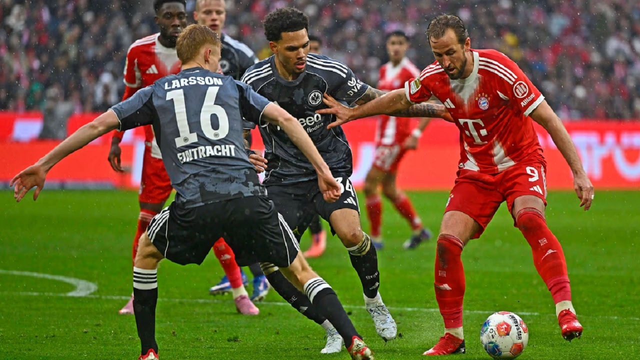 بایرن مونیخ در هفت بیست و سوم بوندسلیگا موفق شد با نتیجه ۳ – ۲ از سد آینتراخت فرانکفورت بگذرد.