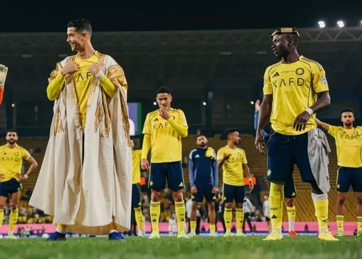 کریستیانو رونالدو در شب بازگشت النصر به صدر جدول لیگ عربستان، با پوشیدن بشت (لباس سنتی این کشور) به یکی از چهرههای اصلی جشن تیمش تبدیل شد.