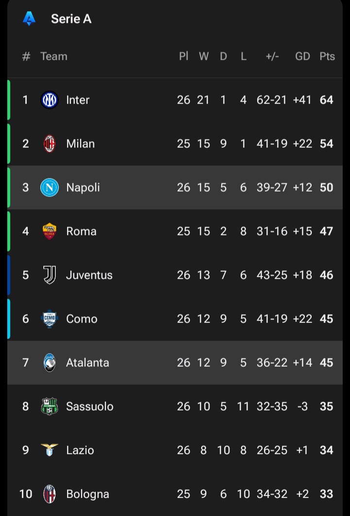 طرفداری | در دیداری از هفته بیست و ششم رقابتهای سری آ فصل ۲۶-۲۰۲۵، آتالانتا با نتیجه ۱-۲ ناپولی را شکست داد. این بازی از ساعت ۱۷:۳۰ در نیوبالانس آرنا و به قضاوت دنیله کیفی آغاز شده بود.