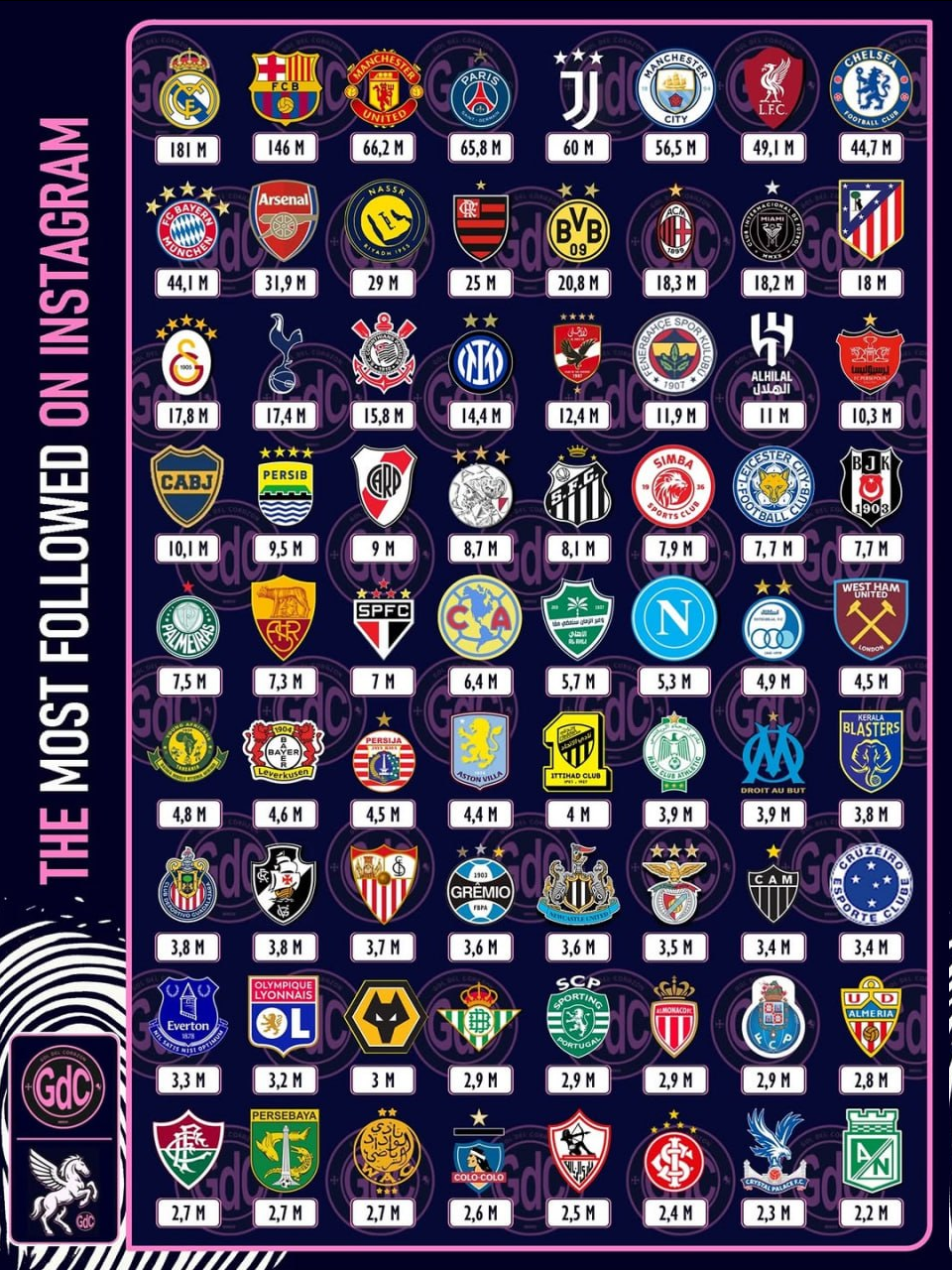 در این ردهبندی، باشگاه پرسپولیس با ۱۰.۳ میلیون دنبالکننده در رتبه بیستوچهارم ایستاده و به عنوان پرمخاطبترین تیم ایرانی در اینستاگرام شناخته میشود.