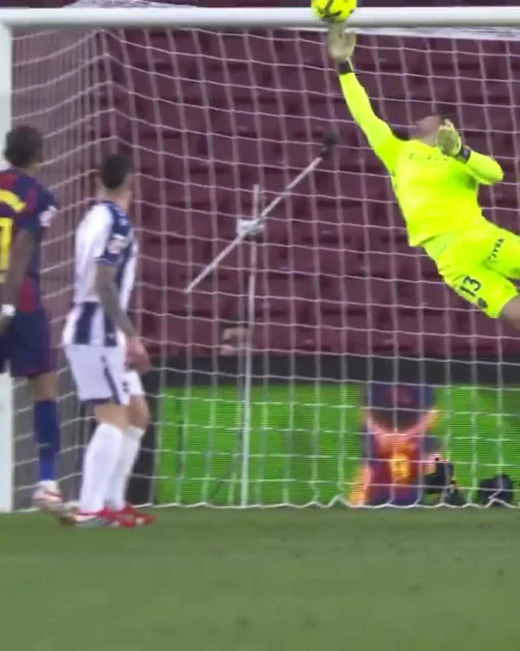 با وجود شکست ۳-۰ مقابل بارسلونا، دروازه بان لوانته، با دبل سیوی زیبا جلوی دریافت یک گل حتمی را گرفت.