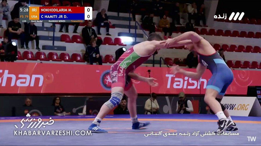 ویدیو| مدال طلای نخودی با پیروزی ۱۰-۰ مقابل کشتیگیر آمریکایی