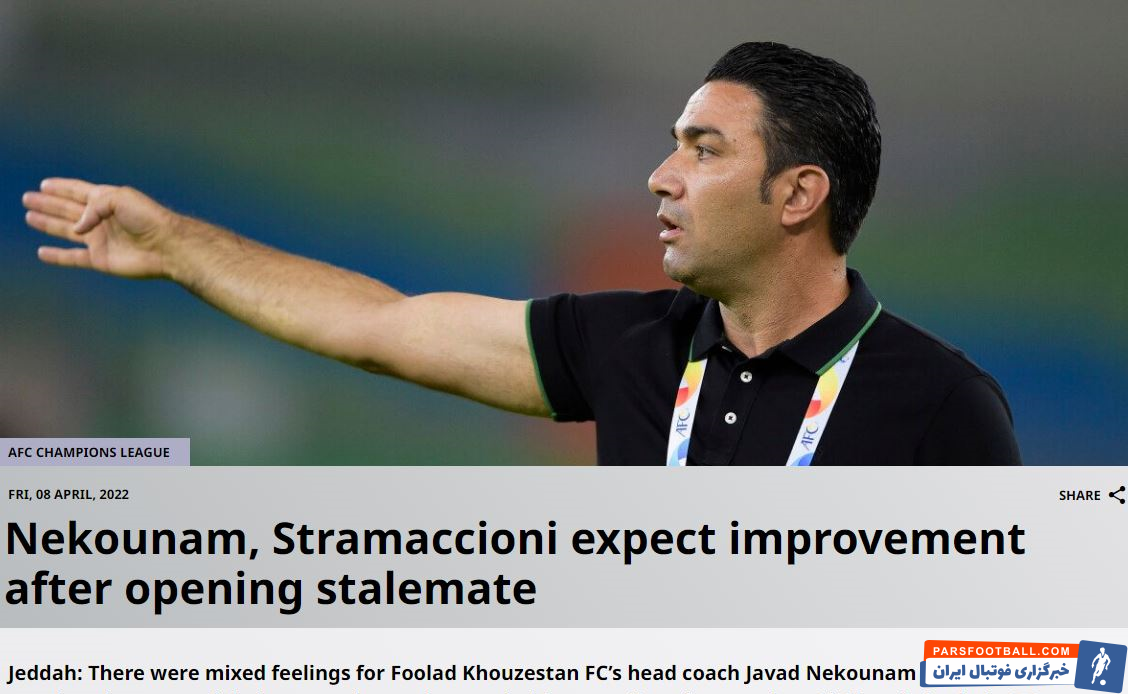 کنفدراسیون فوتبال آسیا در گزارشی به ناکامی نکونام مقابل استراماچونی در کسب پیروزی در اولین بازی لیگ قهرمانان آسیا پرداخت.