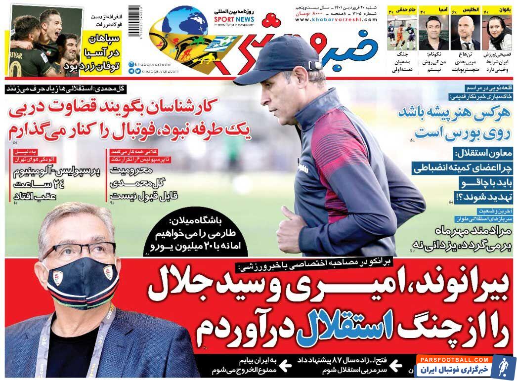 روزنامه خبرورزشی| بیرانوند، امیری و سیدجلال را از چنگ استقلال درآوردم